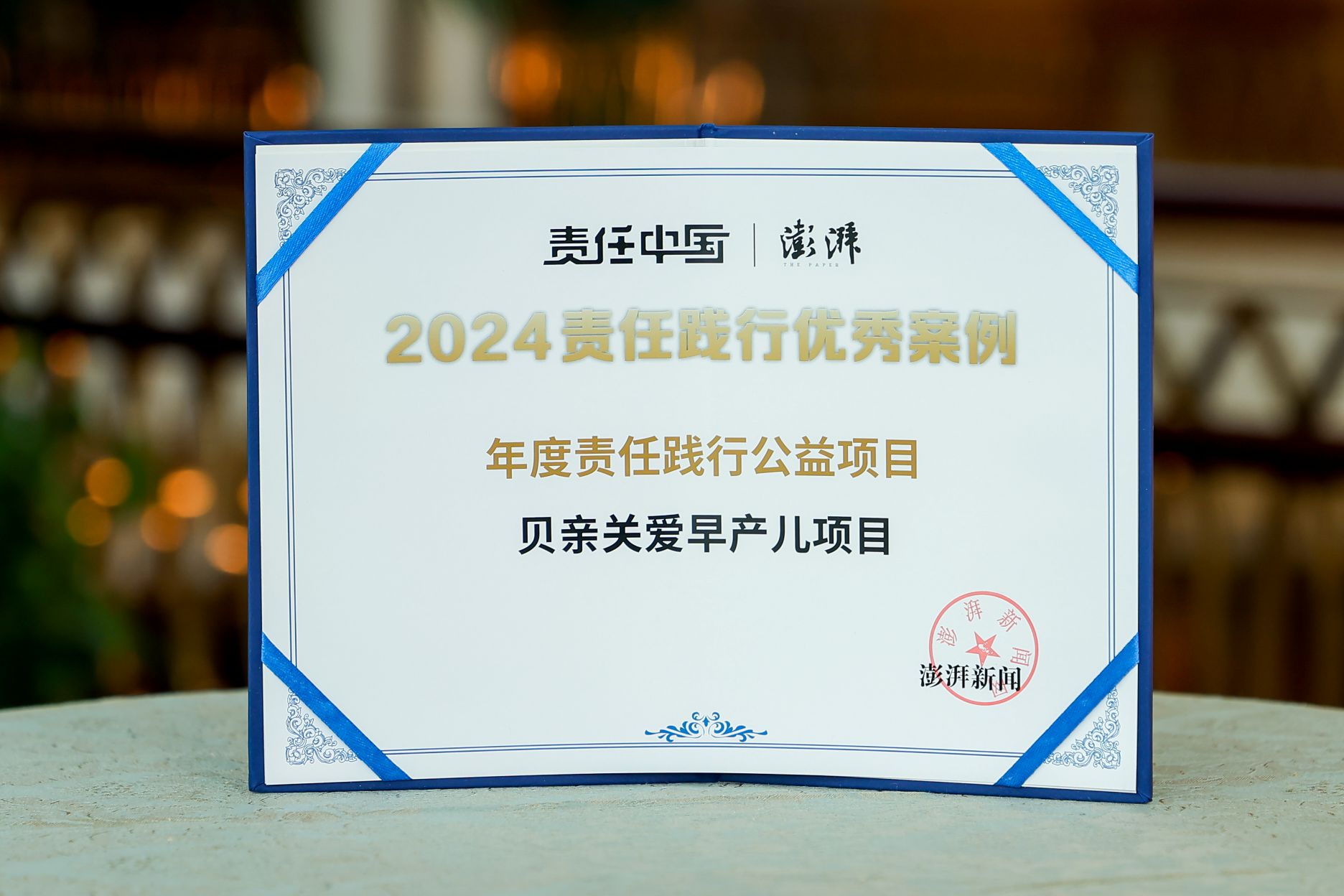The Preterm Babies Care Program has been awarded the Responsible China Public Welfare Project Award. This award is organized by The Paper※3 and aims to promote credible examples of sustainable, high-quality development among enterprises and non-profit organizations.