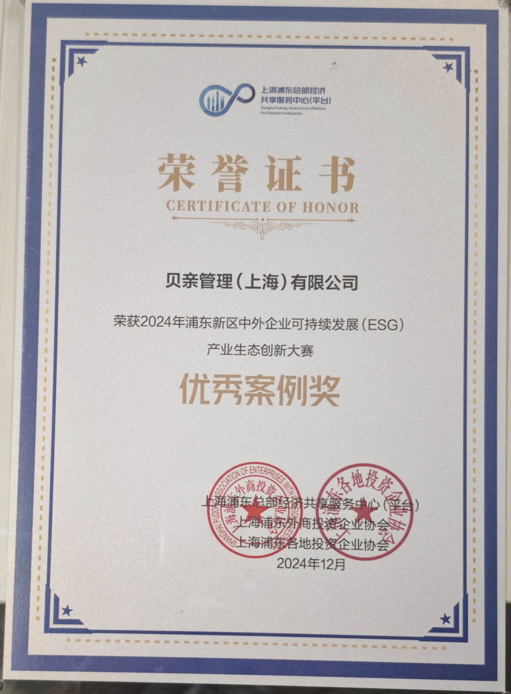 PIGEON (SHANGHAI) CO., LTD. has been highly recognized for its sustainability initiatives in environmental (recycling) and social (medical care) areas by two awards within China.