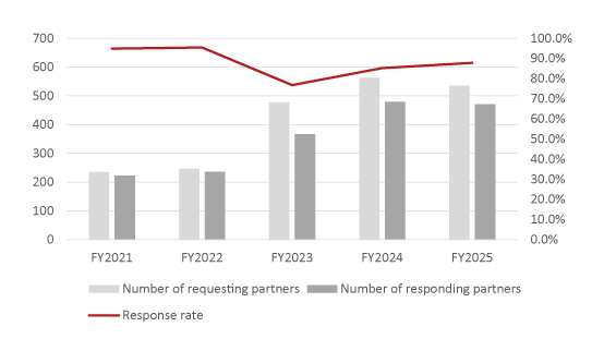 The 2025 survey covered all primary suppliers in the sales and production subsidiaries of the Japan, China, Singapore, and Lansinoh operations. A total of 536 companies were surveyed and 471 companies responded, for a response rate of 87.9%.