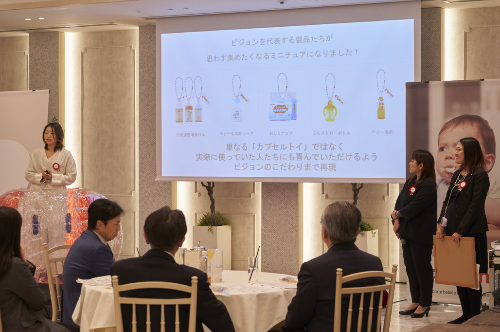 Through this initiative, we invite all employees to submit creative ideas and new business concepts. The program does more than just recognize outstanding efforts; it actively nurtures these proposals with a view toward future commercialization. Any employee with a strong desire to turn an idea into reality and the passion to persist is eligible to apply. In 2022, we expanded eligibility beyond Pigeon Corporation to include employees across all our domestic group companies.
